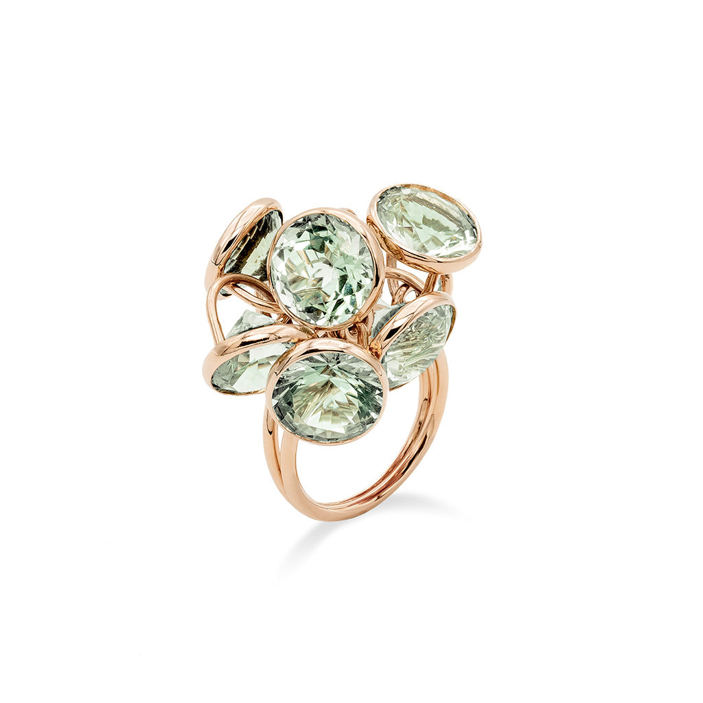 Each piece is a work of art, crafted with meticulous attention to detail and showcasing the natural beauty of topazes, amethysts and prasiolites. The subtle shimmer of the gemstones catches the light and sets your heart ablaze, while the intricate designs of the delicate rose gold create a sense of movement.