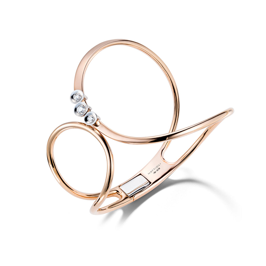 Wavy and light designs play with the shape of American chips, transforming a whimsical idea into a masterpiece of contemporary jewelry. The Chips cuffs by Mattioli represent a perfect fusion of artisan skill and modernity. Available in 18k rose gold with 18k white gold settings and movable white diamonds, or entirely in 18k white gold with white diamonds, the Chips cuffs are entirely handcrafted in Italy. Elevate your look by pairing the Chips cuffs with the matching rings. Discover the Chips collection by Mattioli, where each piece tells a story of timeless luxury and creativity.