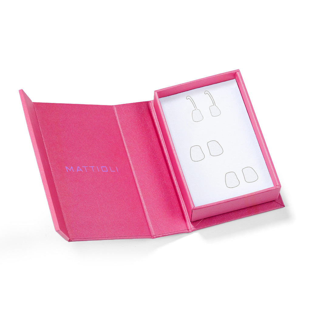 All the versatility and color of Puzzle jewelry, in a Mini format. The Mini Puzzle collection enables you to customize your style with a simple gesture, adding touches of color and precious stones to every look. Available in a gift box version with three color options or in versions featuring pavé diamonds, sapphires, and tsavorites, Mini Puzzle jewelry showcases the full creativity of the Mattioli brand in the smallest possible size.