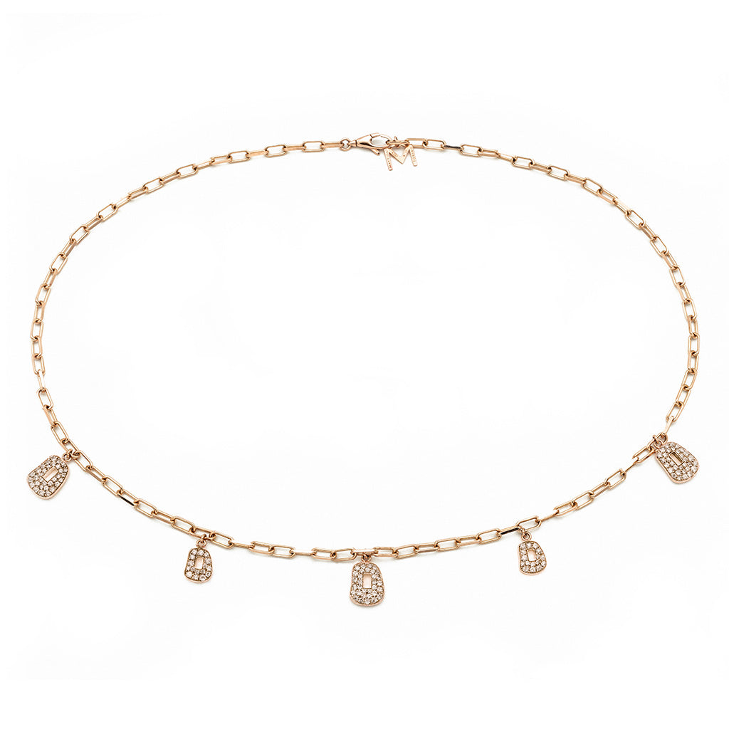 Necklace in 18k gold with 0,46 ct. (three elements) or 0,88 ct. (five elements) brown or white diamonds