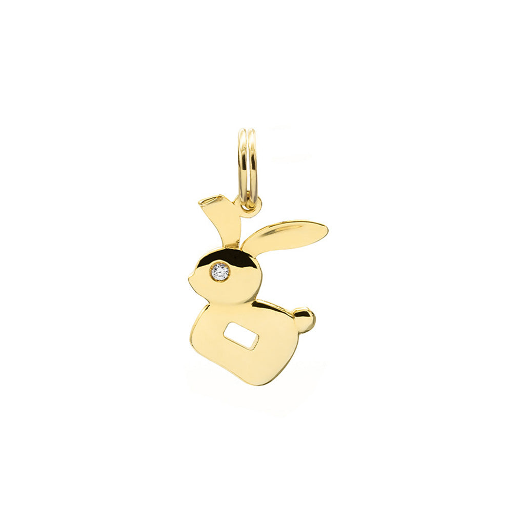 Bunny charm in 18k yellow gold and white diamonds