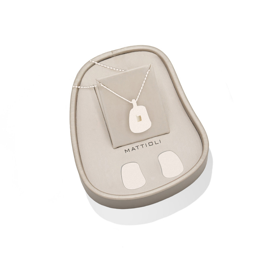 Refined expression of the playful and versatile spirit of Mattioli jewelry, the Puzzle pendants in 18k white gold with white diamonds pavé represent the high-end version of the collection's best seller. Sophisticated plays of light alternate with forms inspired by abstract art and Calder's sculptures.