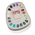 Unleash your creativity and compose your Puzzle earrings gift box by choosing from seven different gold colors and over twenty interchangeable elements. Enjoy matching iridescent colored mother-of-pearl, woods, and gemstones, to the most elegant versions entirely set with white diamonds, pink and blue sapphires.