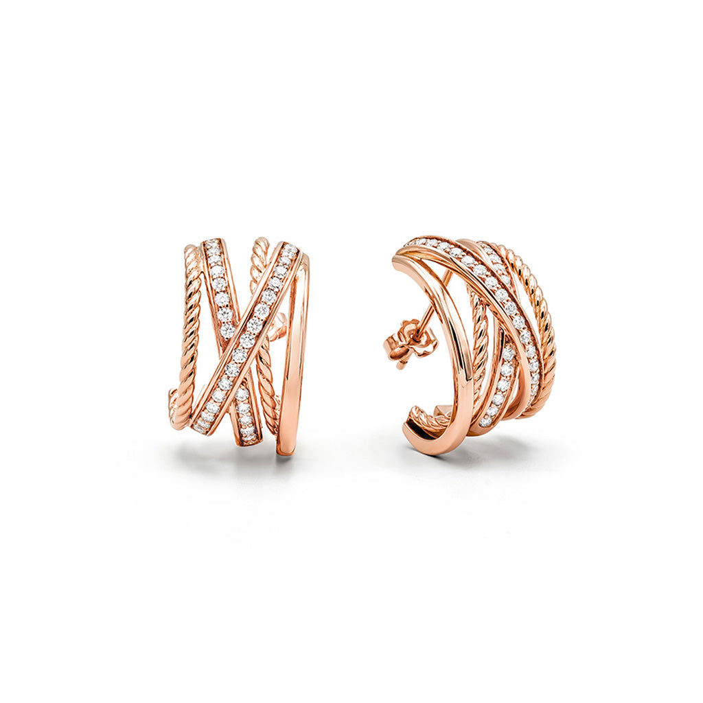 Earrings in 18k rose gold and 1,10 ct. white diamonds
