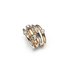 Ring in 18k rose and white gold bezels and 0,28 ct. white diamonds